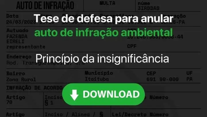 Declarar a nulidade do auto de infração ambiental através do princípio da insignificância em razão de a conduta ser minimamente ofensiva ao meio ambiente.