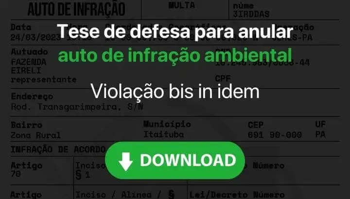 Declarar a nulidade do auto de infração ambiental por violação ao princípio no non bis in idem, ou seja, quando um outro já tiver sido lavrado pelo mesmo órgão, fato e parte autuada.